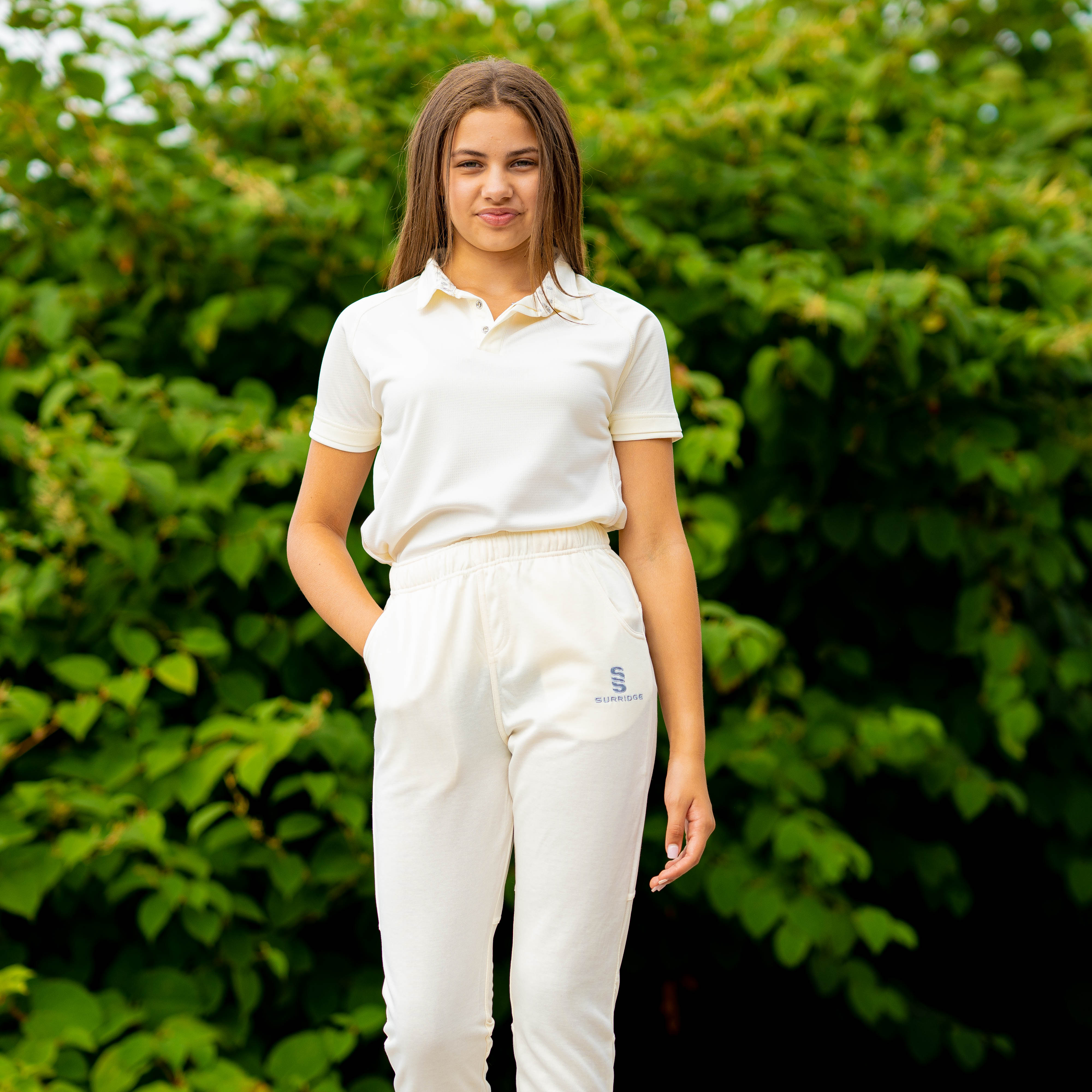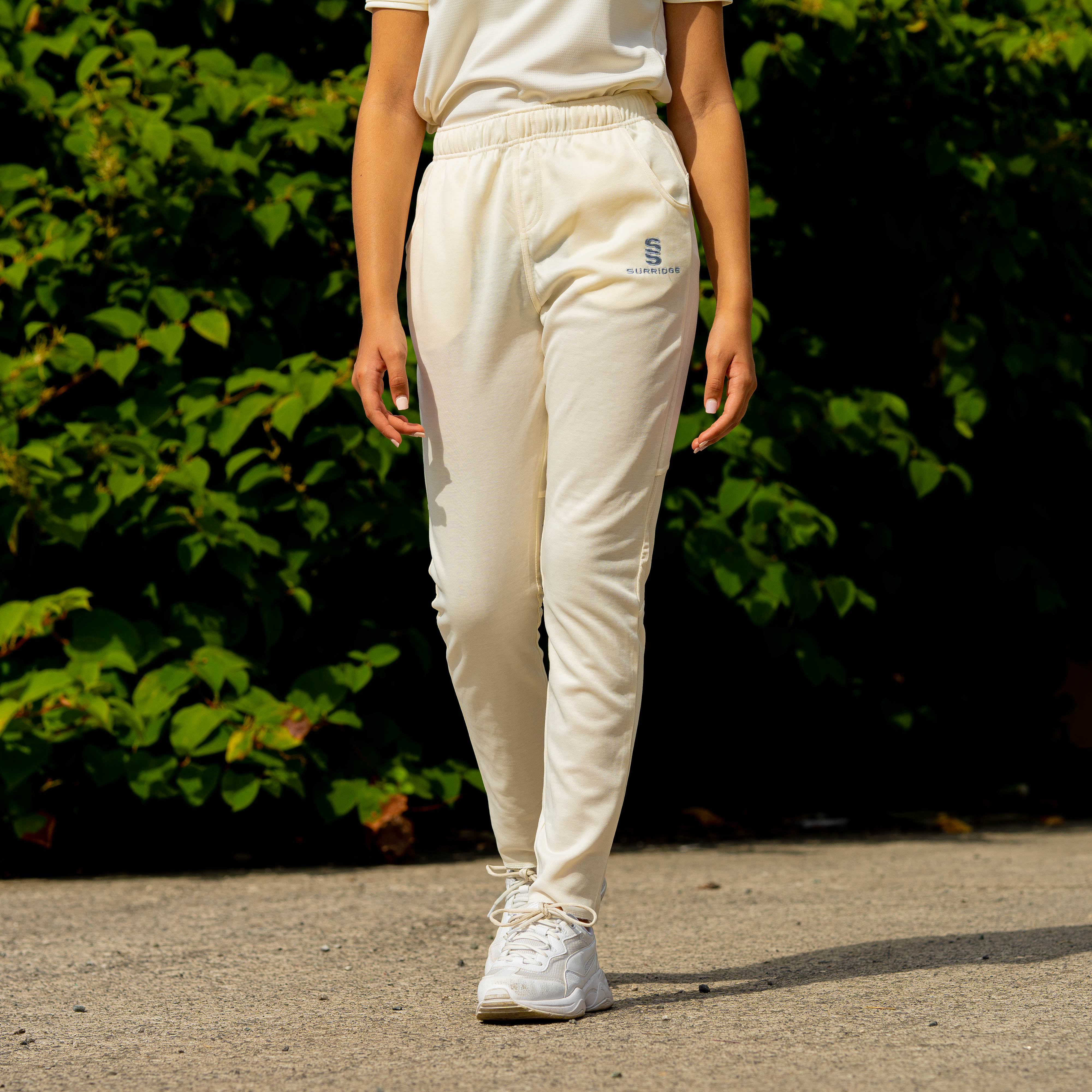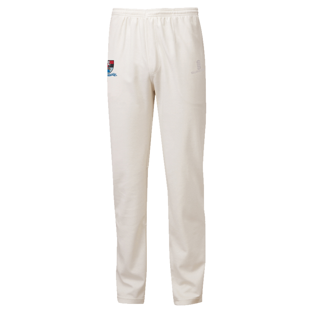 Tek Playing Pant, embroidered ss left leg in silver. Made from a slightly fleecey internal material, with tapered legs from the knee downwards. Comes in an unfinished leg with 2 pockets. Elasticated waistband with draw cord. Specifically designed for he modern women cricketer.